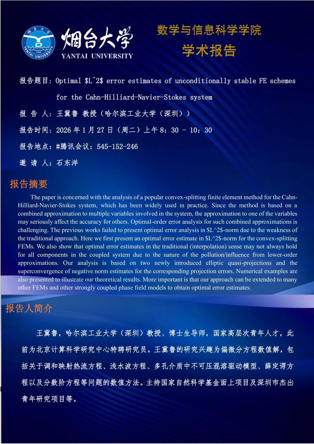 学术报告—王冀鲁 教授(哈尔滨工业大学(深圳))—20260127